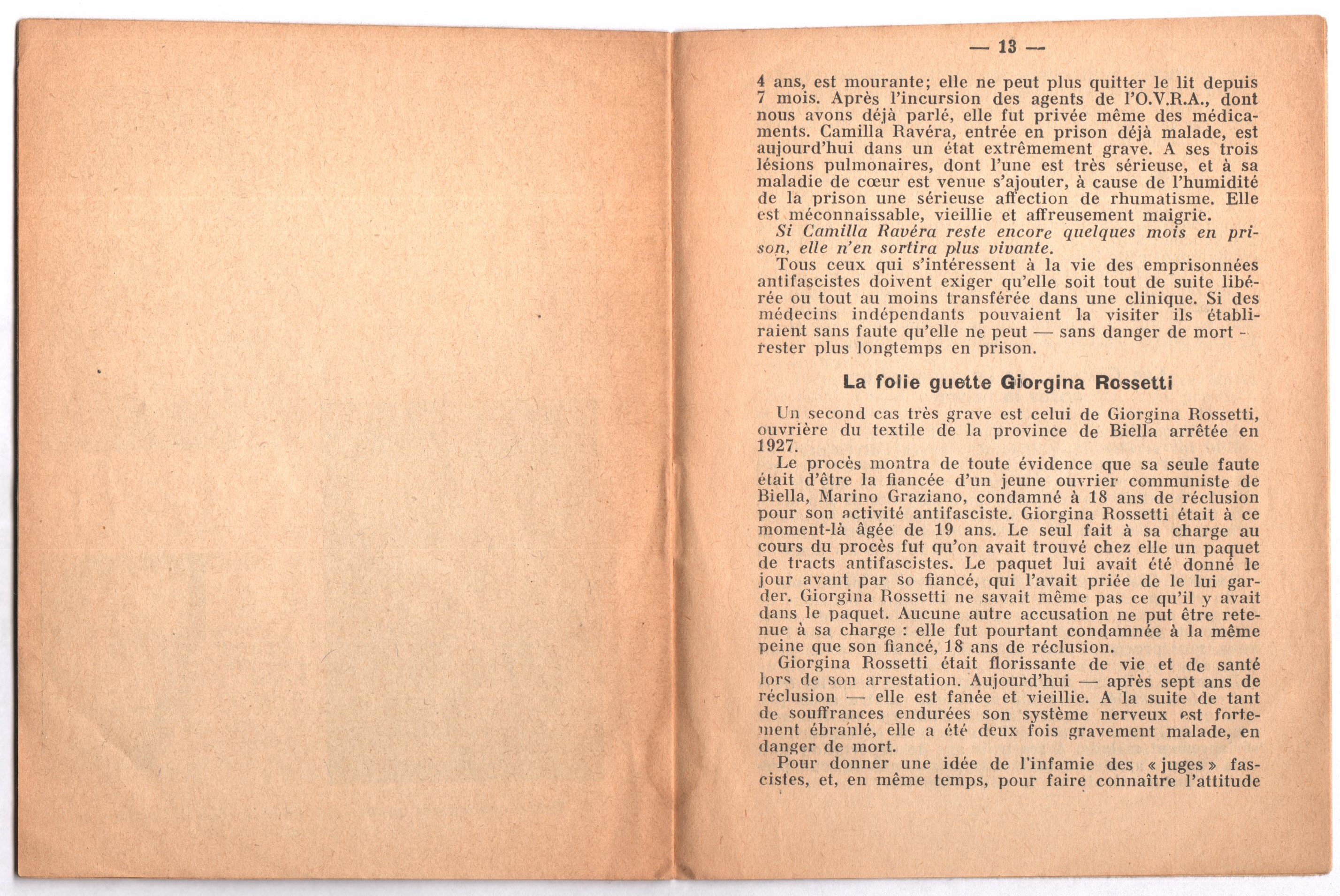 Femmes antifascistes dans les geôles de Mussolini (Éditions des Patronati Italiens pour la Défense des Victimes du Fascisme, Paris [1933])